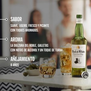 • Spend and enjoy a special moment alone or with friends, to relax after a day’s work or for a celebration with a Black & White Scotch Whisky, a traditional flavor of renowned quality. Drink it neat or mixed with ice; if you have an adventurous spirit, you can prepare cocktails according to your preference.